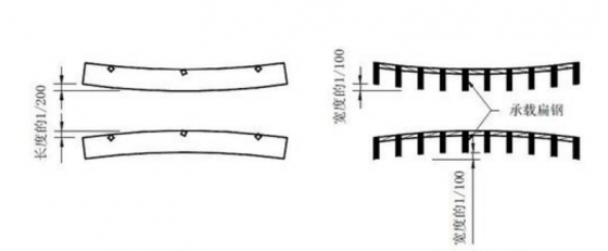 6 縱向彎曲:鋼格板的縱向彎曲撓度應(yīng)不大于其長(zhǎng)度的1/200。
